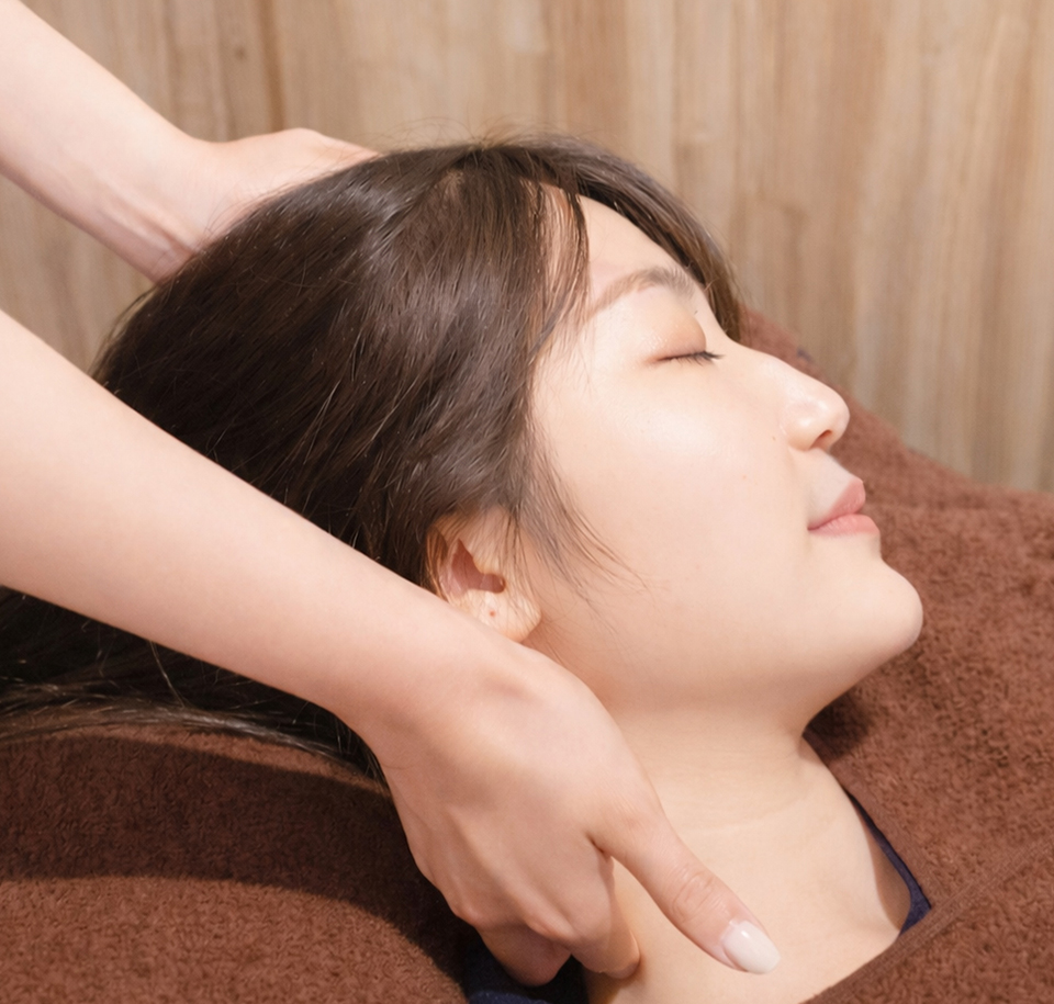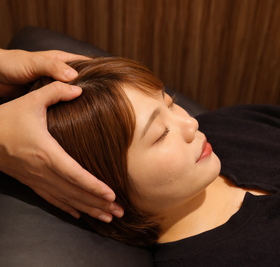 頭のもみほぐしだけでなく、首・肩までしっかり丁寧に施術します。